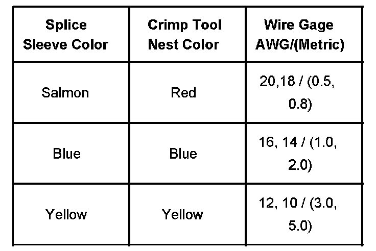 IMPORTANT: Use only GM splice sleeves, other splice sleeves may not protect the splice from moisture or a provide good electrical connection.