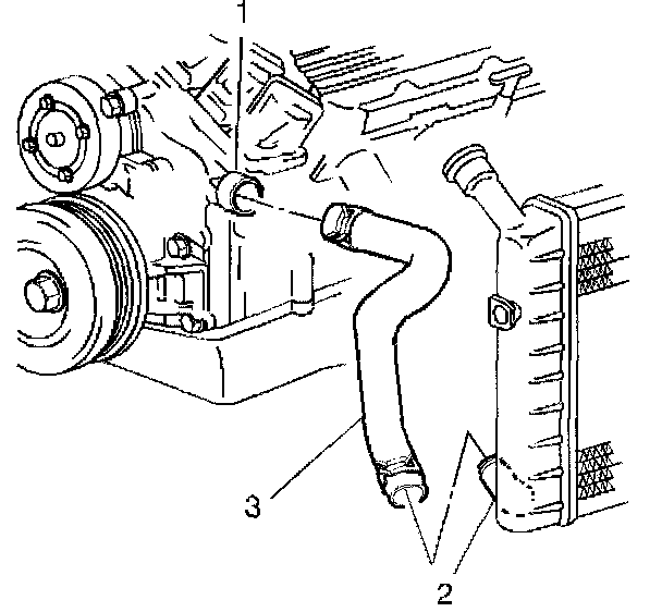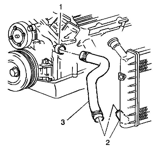 4. Remove the radiator hose (3) from the radiator outlet (2).