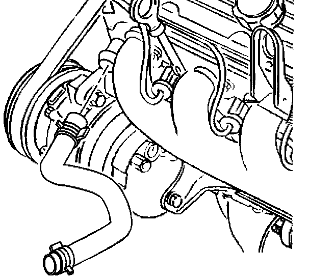 6. Use J 38185 in order to reposition the hose clamp from the water pump housing.