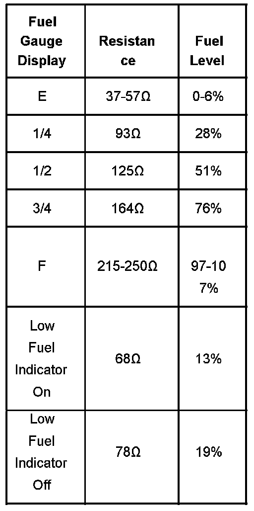 The value in the table are approximate values based on information obtained from properly operating vehicles. Actual results may vary slightly.