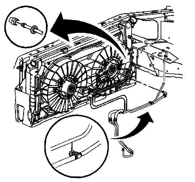 Notice: Ensure that the cooler line being installed has a plastic cap on each end that connects to a quick connect fitting. If no plastic cap exists, or the plastic cap is damaged, obtain a new plastic cap and position on to the cooler line prior to the cooler line installation.