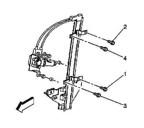 Important: In order to ensure proper orientation of the window regulator to the door, tighten the window regulator bolts in the specified sequence.