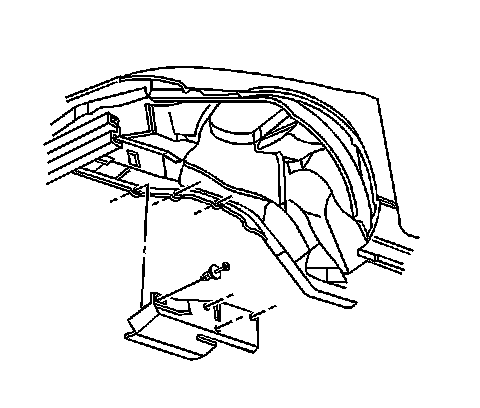 3. Remove the engine splash shield from the lower flange of the engine compartment side rail.