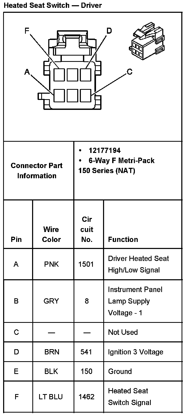 Heated Seat Switch - Driver: