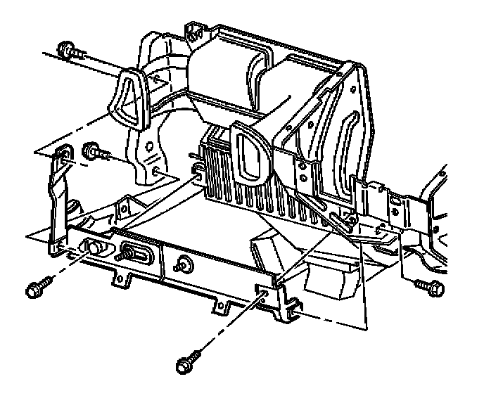 18. Remove the retaining bolts from the center support bracket of the HVAC module.