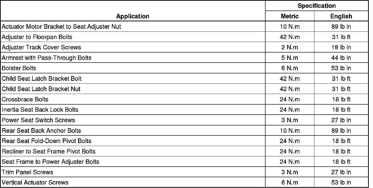 Fastener Tightening Specifications