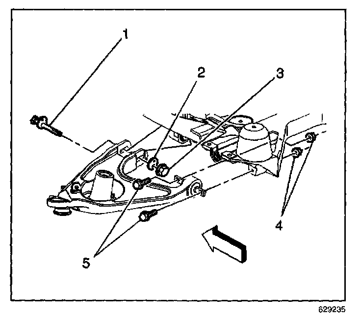 2. Loosen rear lower control arm mounting nuts (3, 4).