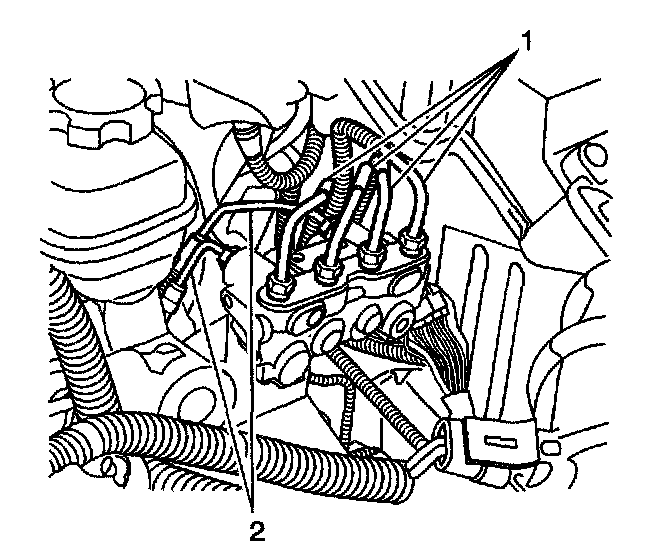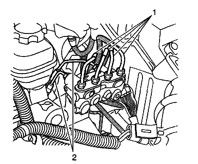 5. Connect the master cylinder brake pipes (2) to the proportioning valve assembly.