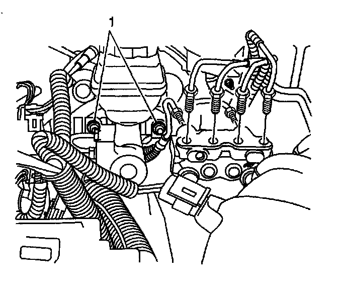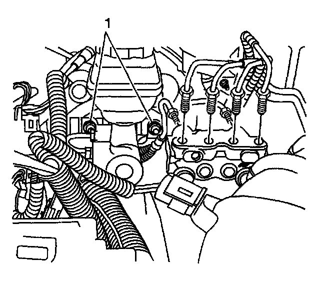 1. Disconnect the caliper and wheel cylinder brake pipes (1) from the proportioning valve assembly.