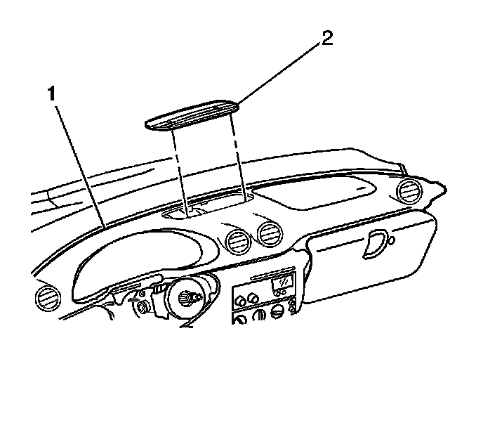 2. Install the grille (2) to the I/P trim pad (1), pressing into place until fully engaged.