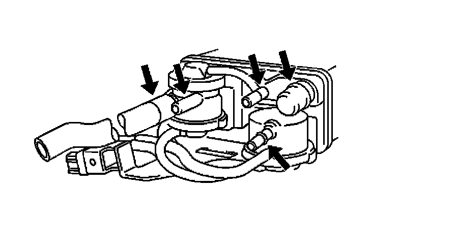 2. Visually inspect the EVAP canister, especially at the arrows, for any cracks or damage.