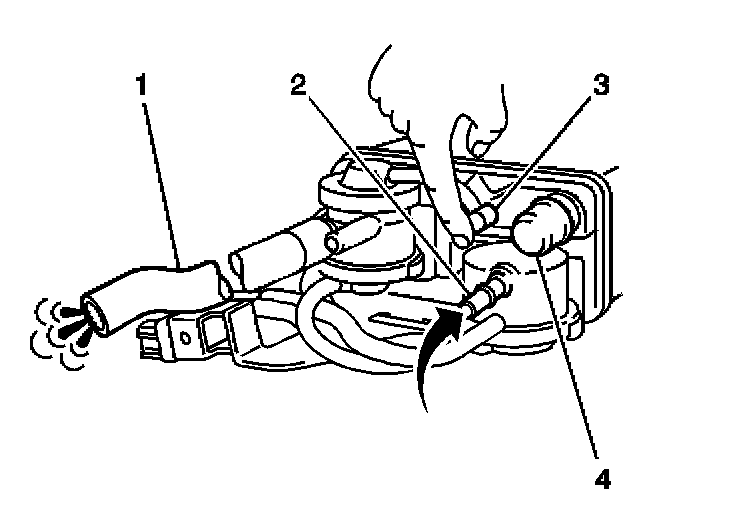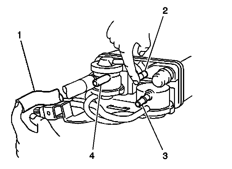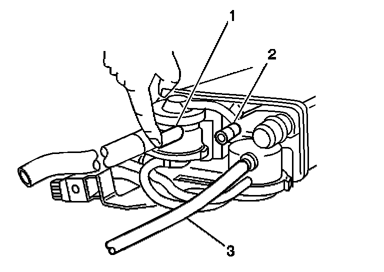 16. Connect the J 23738-A or an equivalent hand vacuum pump to the EVAP vapor port (3).