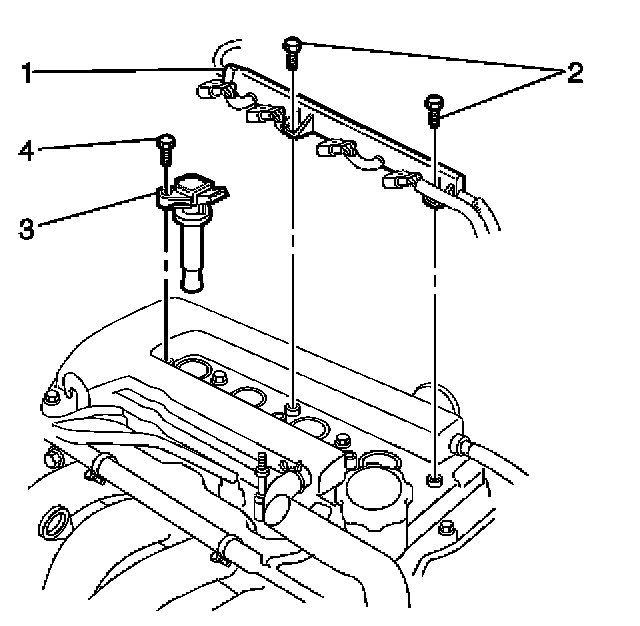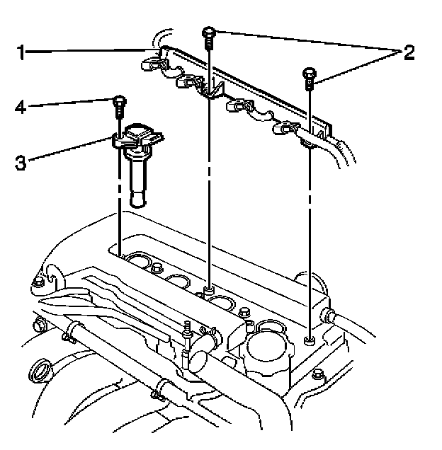 4. Disconnect the 4 electrical connectors from the ignition coils (3).