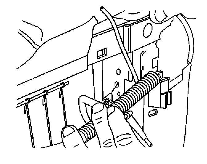 11. Remove the heated seat wiring harness and the side air bag wire harness. Remove the wiring harnesses through the front seat cushion and frame area.