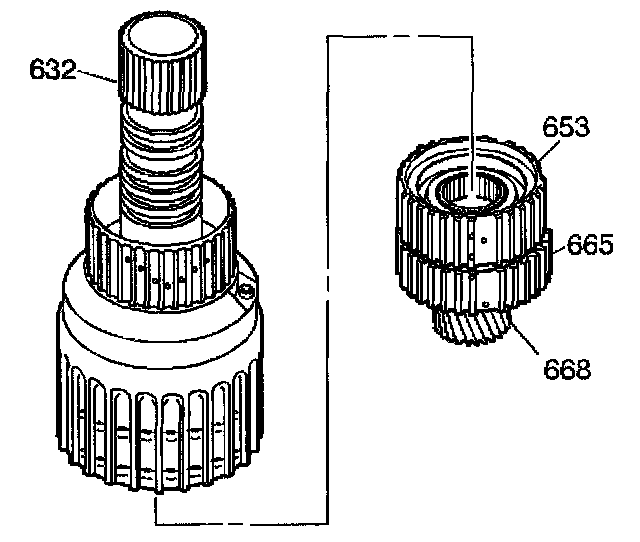 4. Remove the input and third clutch sprag inner race (661) and the input sun gear spacer (667) from the input sun gear (668).