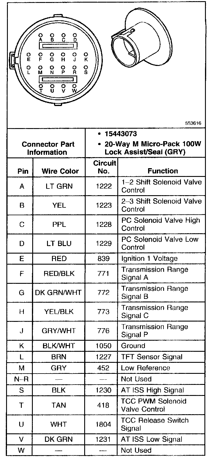 Automatic Transmission Inline 20-Way Connector End View