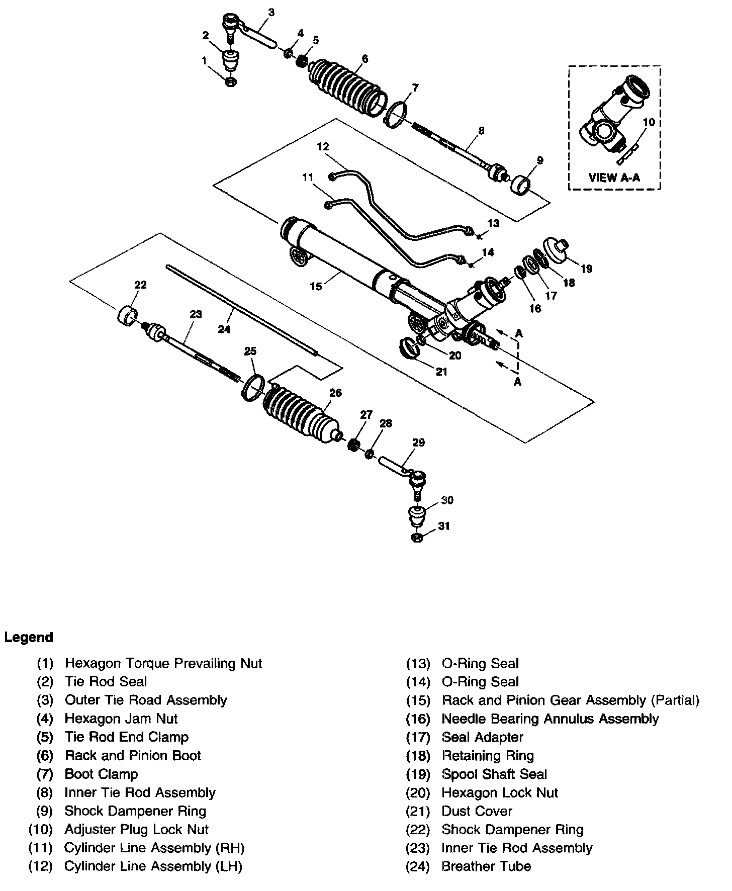 Power Steering Gear Disassembled View (Rack and Pinion)