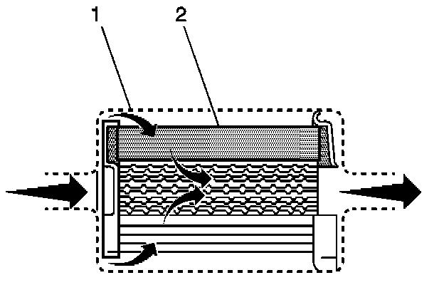 The fuel filter is located on the fuel feed pipe, between the fuel pump and the fuel injectors. The paper filter element (2) traps particles in the fuel that may damage the fuel injection system. The filter housing (1) is made to withstand maximum fuel system pressure, exposure to fuel additives, and changes in temperature. There is no service interval for fuel filter replacement. Replace a restricted fuel filter.