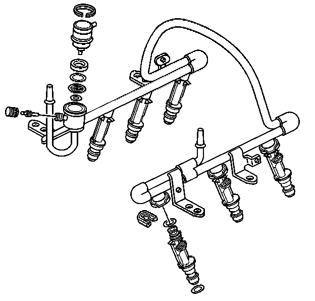 The fuel rail assembly attaches to the engine intake manifold. The fuel rail assembly performs the following functions: