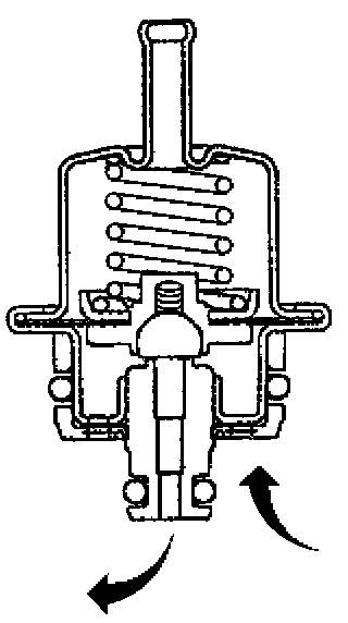 The fuel pressure regulator is a vacuum operated diaphragm relief valve with fuel pump pressure on one side and regulator spring pressure and intake manifold vacuum on the other side. The fuel pressure regulator maintains a constant pressure differential across the injectors at all times. The pressure regulator compensates for engine load by increasing fuel pressure as the engine vacuum drops.