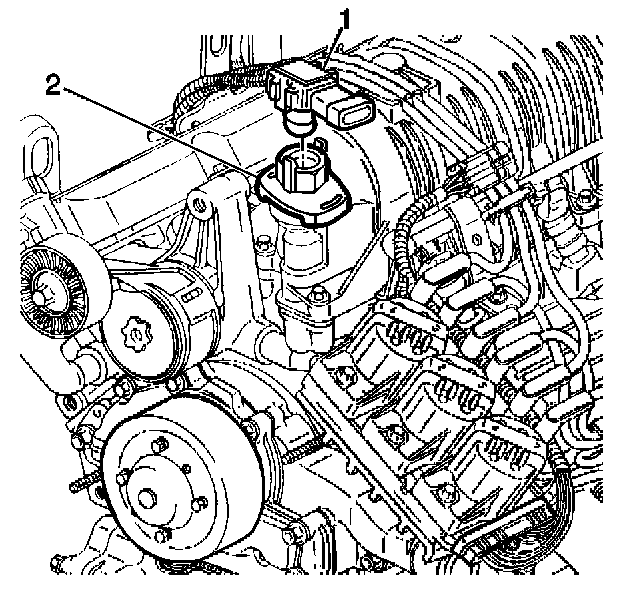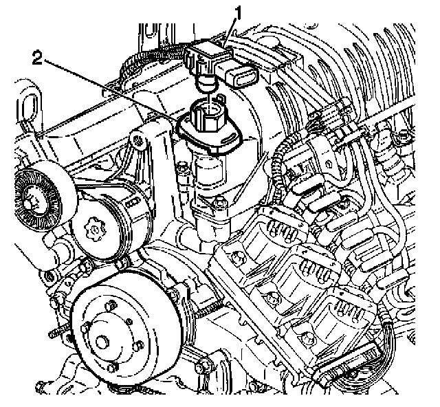 2. Position and install the MAP sensor (1) to the PCV valve cover (2). Ensure that the locking tabs engage to hold the MAP sensor to the PCV valve cover.