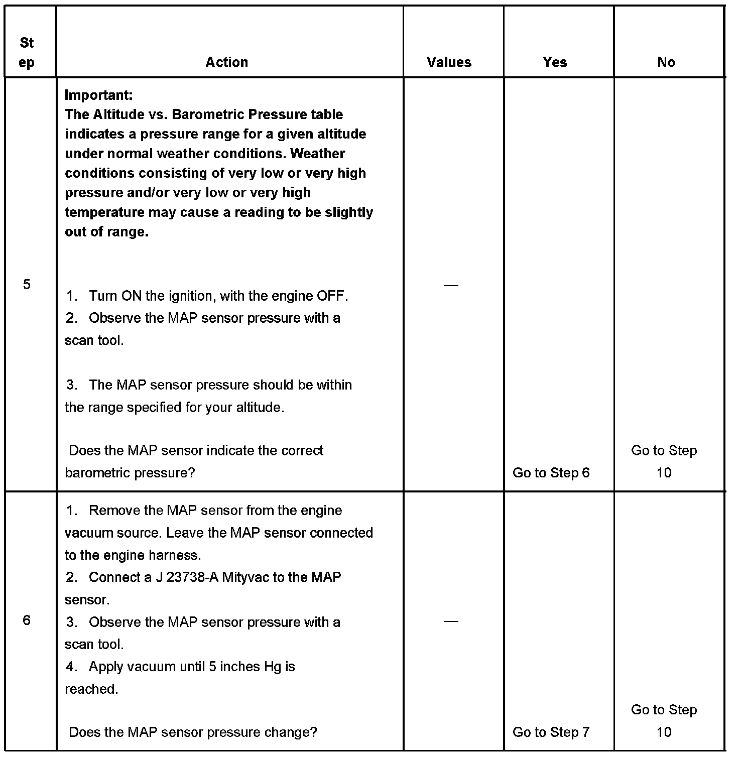 4. This step tests the MAP sensor's ability to correctly indicate BARO.