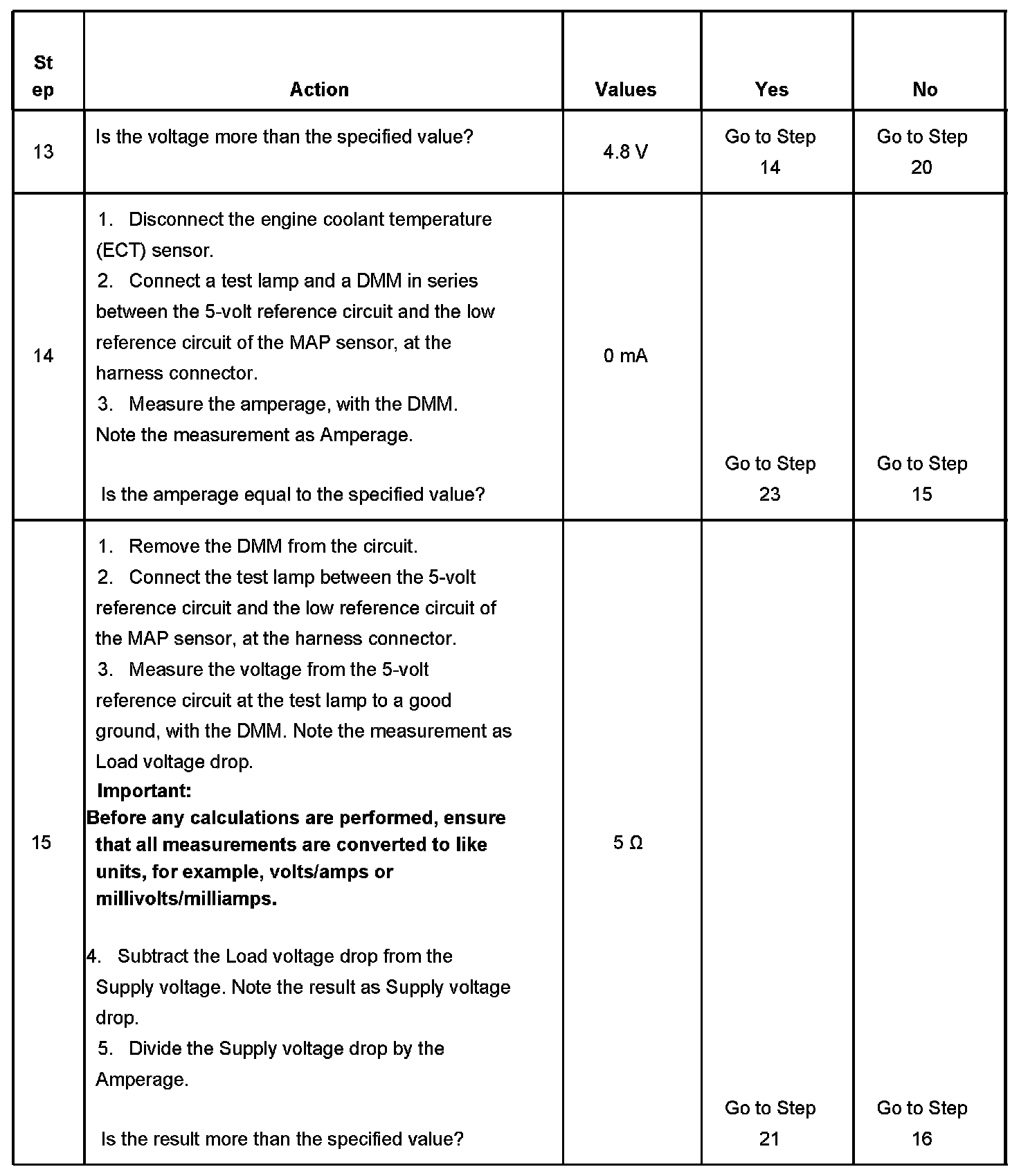 12. The measurement noted in this step will be used in subsequent steps if the measurement does not exceed the specified value.