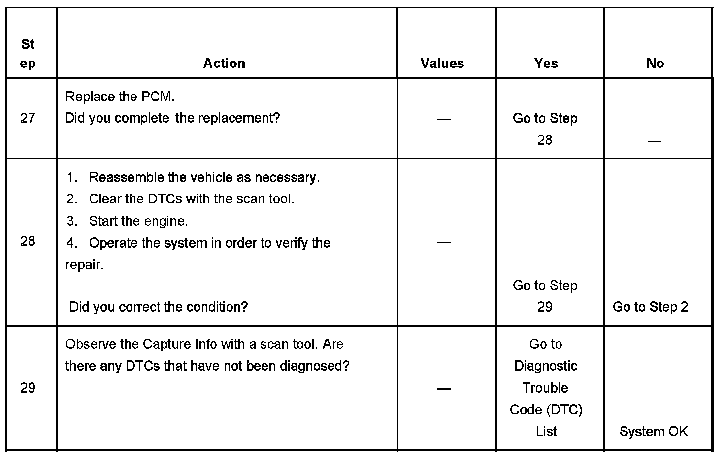 The number below refers to the step number on the diagnostic table.
