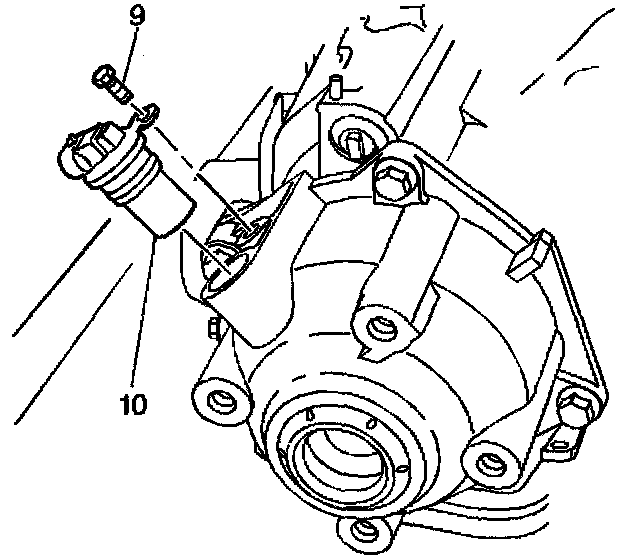 2. Install the vehicle speed sensor (10) and the retaining bolt (9).