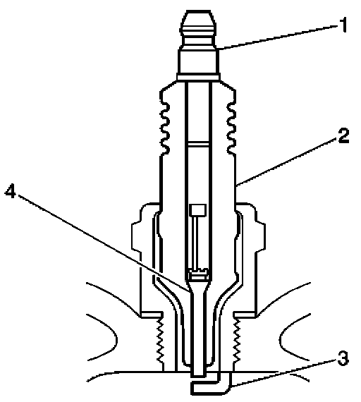- Inspect for the correct spark plug torque. Refer to Ignition System Specifications. Insufficient torque can prevent correct spark plug operation. An over torqued spark plug, causes the insulator (2) to crack.