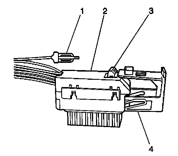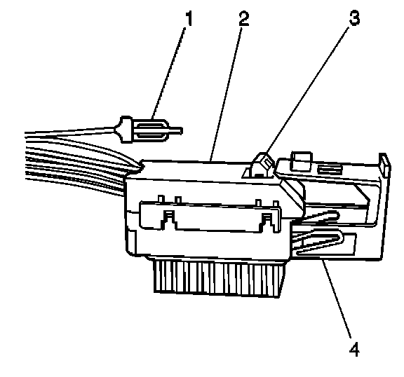 8. Install the CPA (1) to the inflatable restraint SDM wiring harness connector (2).