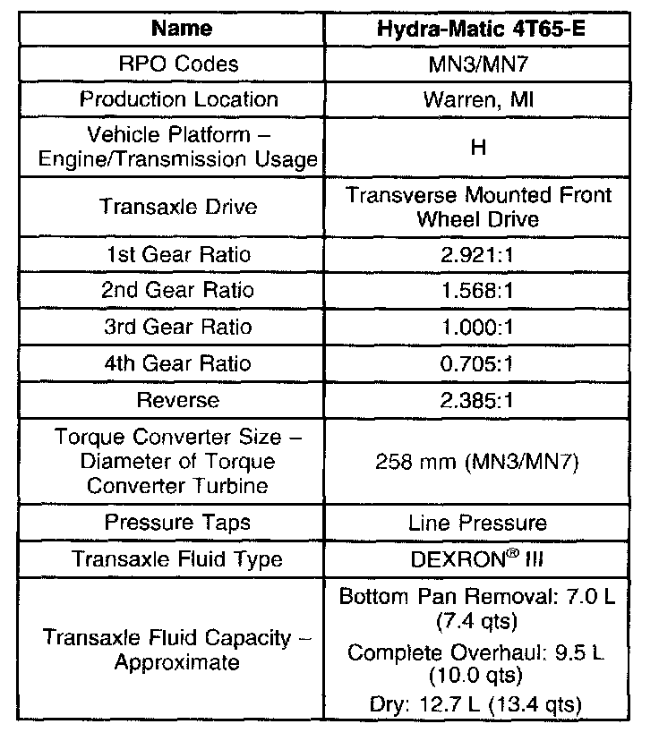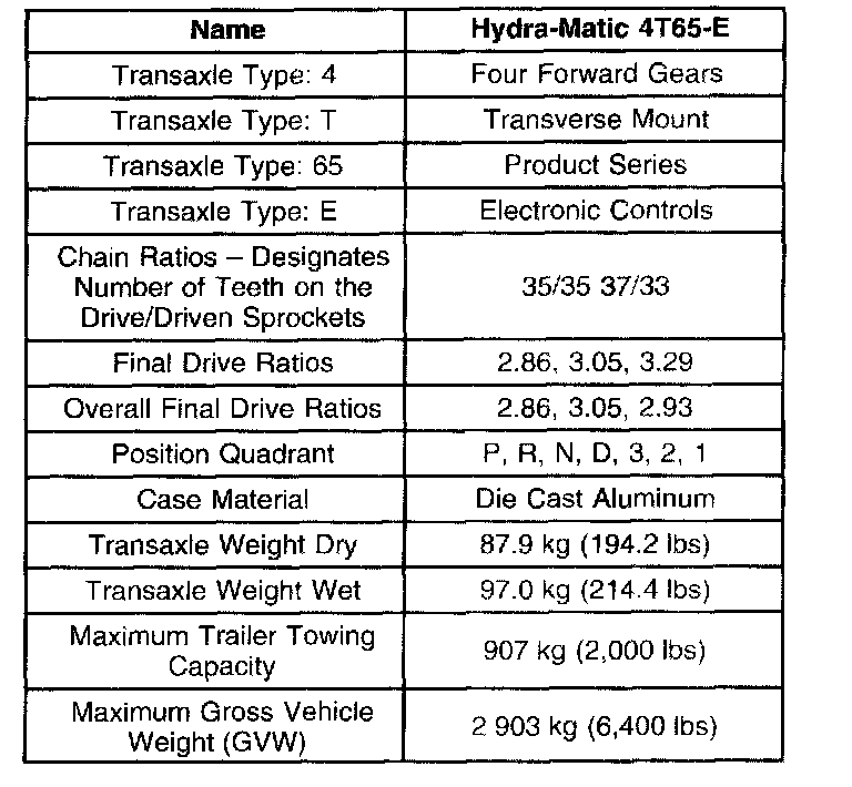 Transmission General Specifications