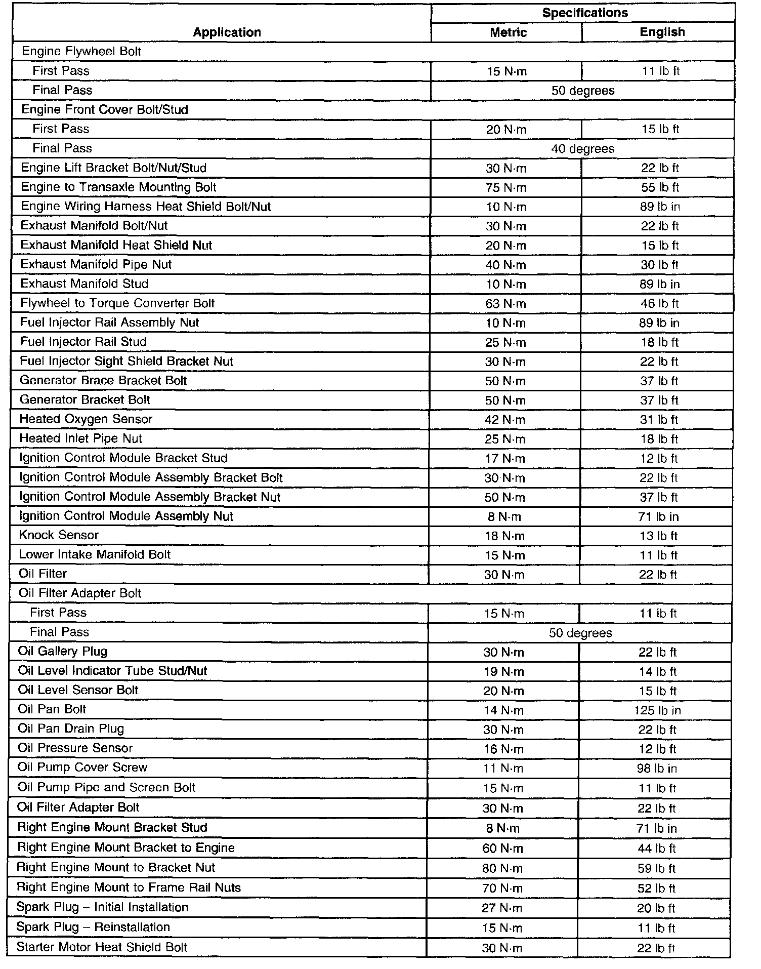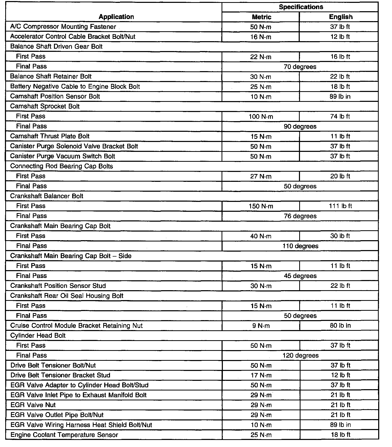 Torque Specifications