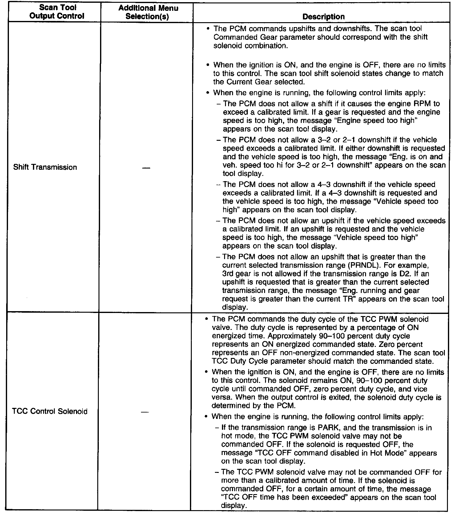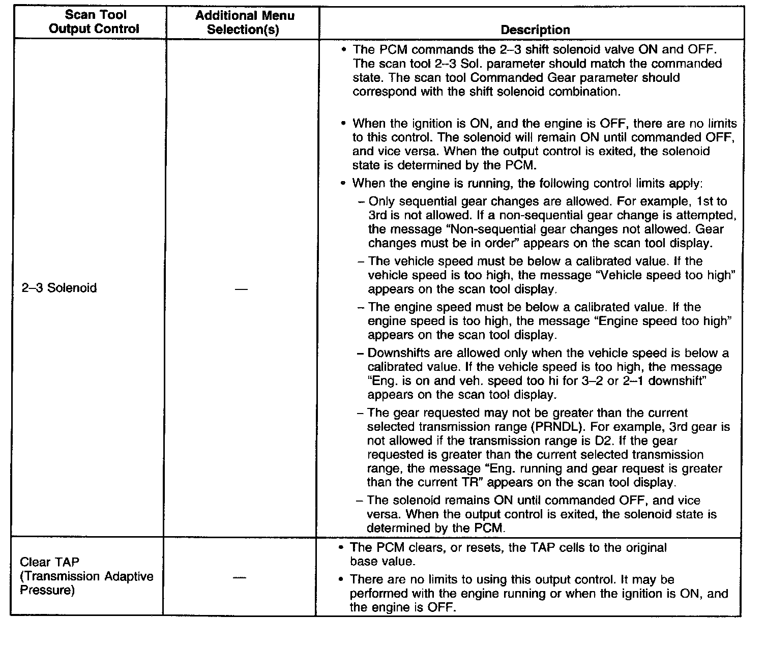 Scan Tool Output Controls