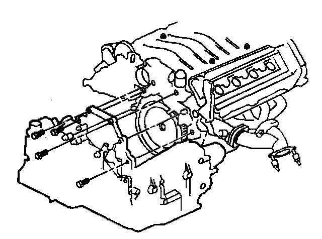 8. Install the 4 bolts securing the center transaxle brace to the engine and transaxle.