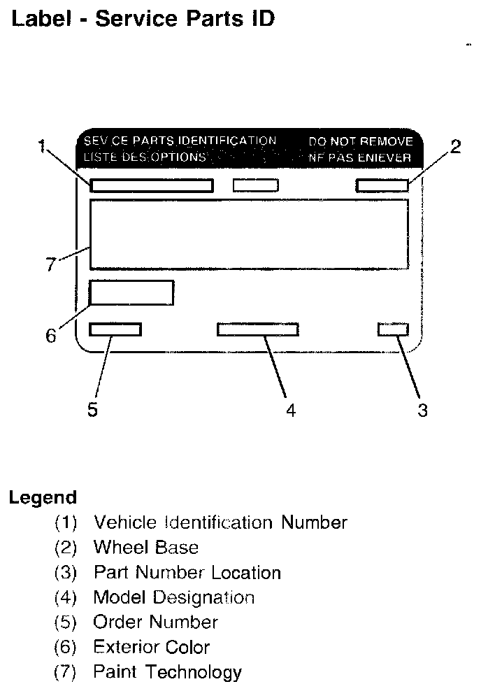 The service parts identification label is placed on the spare fire cover panel in order to help service and parts personnel identify the vehicle's original parts and the vehicle's original options.