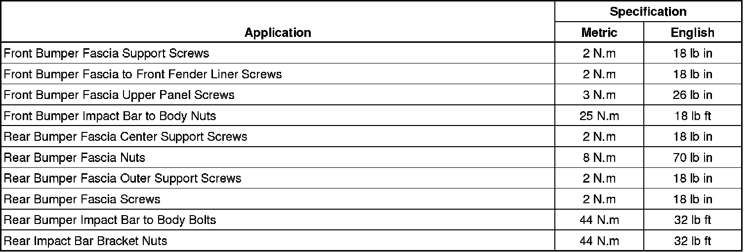 Bumper: Specifications