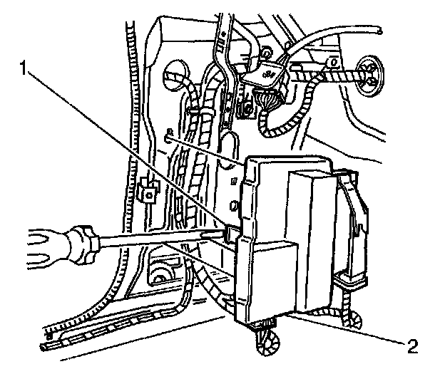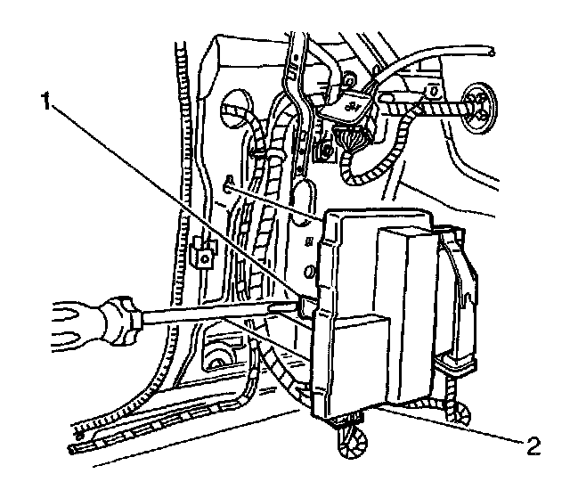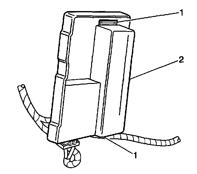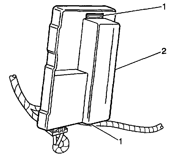 6. Disengage the two retaining tabs (1) on the mounting bracket and slide the ASM control module (2) out of the bracket.