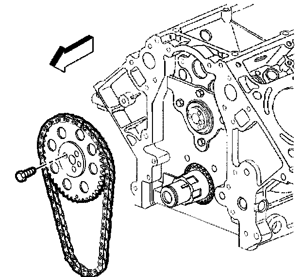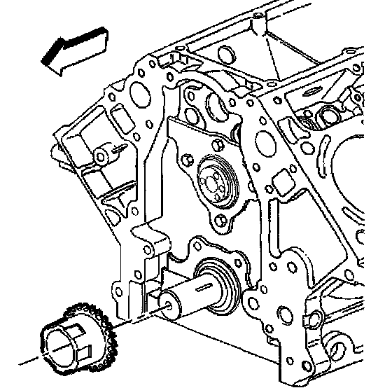 3. Install the crankshaft sprocket onto the front of the crankshaft. Align the crankshaft key with the crankshaft sprocket keyway.
