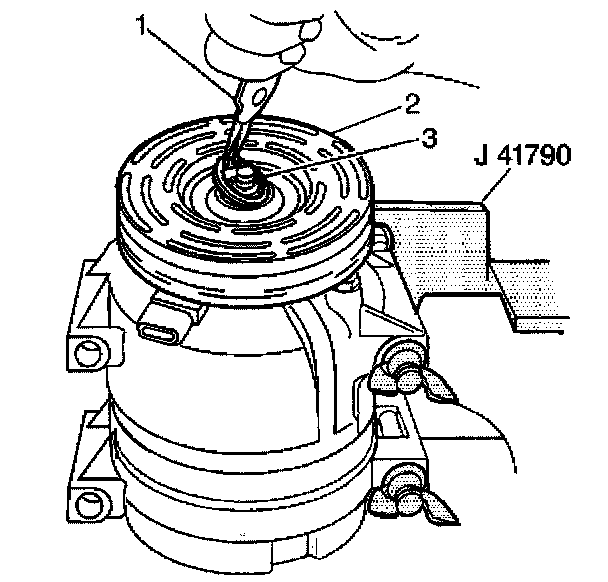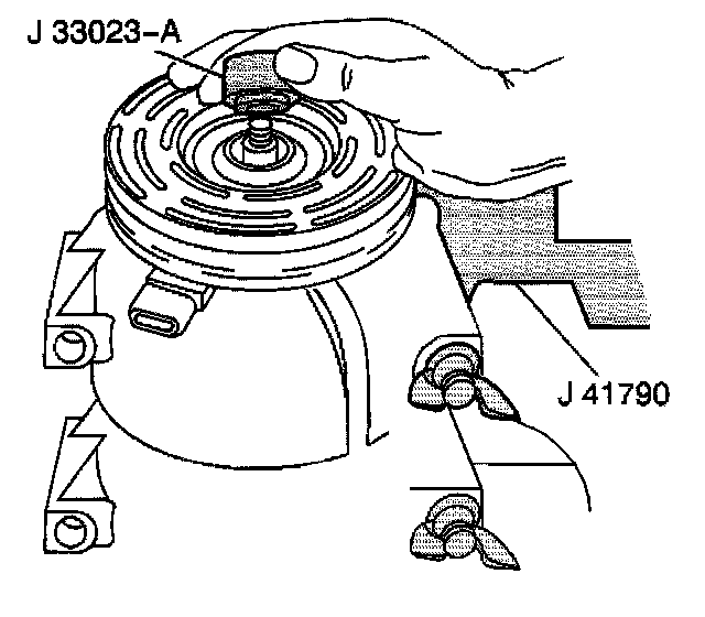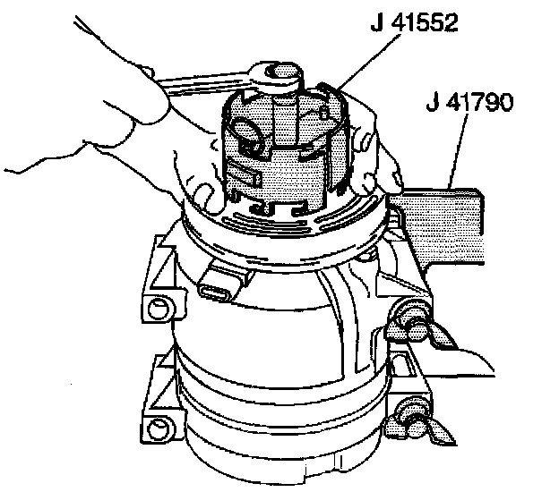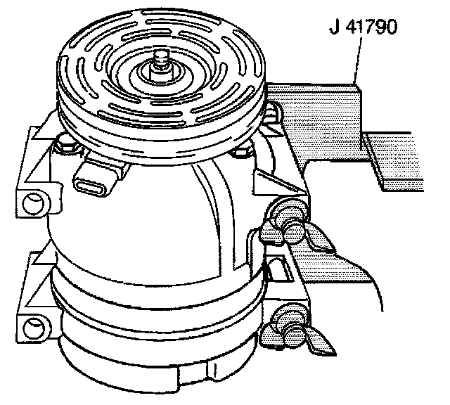 2. Clamp J 41790 in a vise and attach the A/C compressor to J 41790.