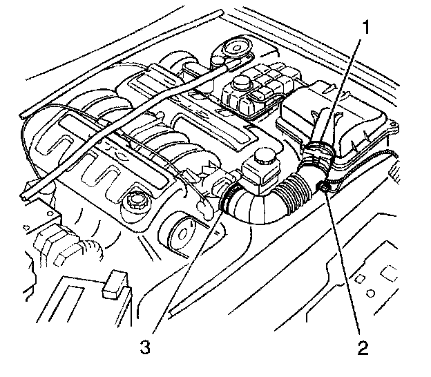 5. Loosen the two intake duct clamps (3). then remove the duct.