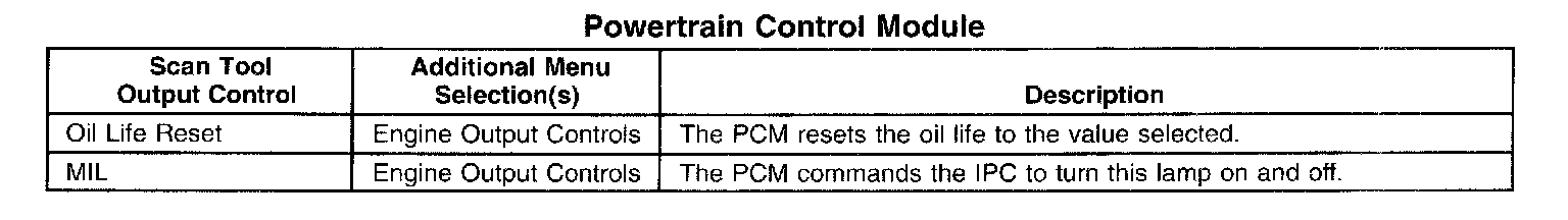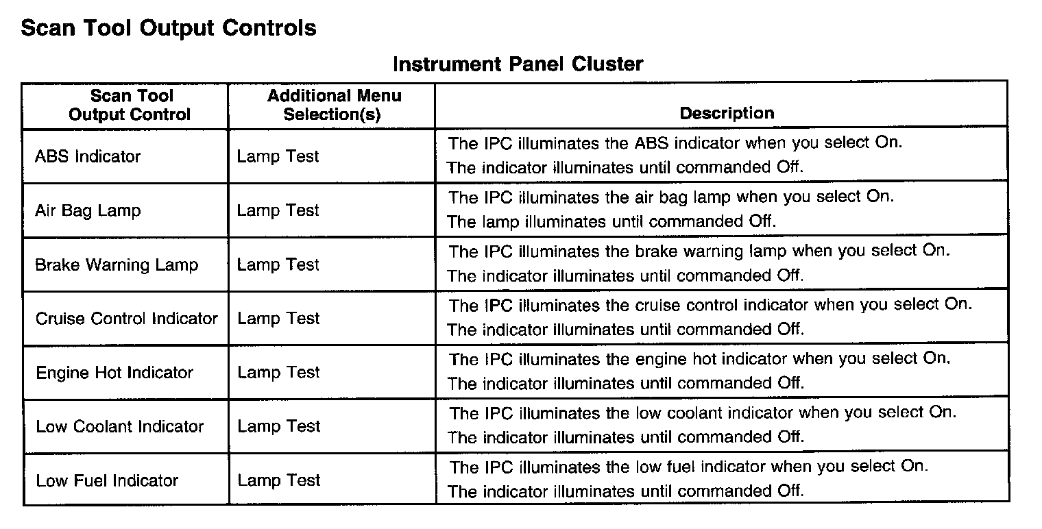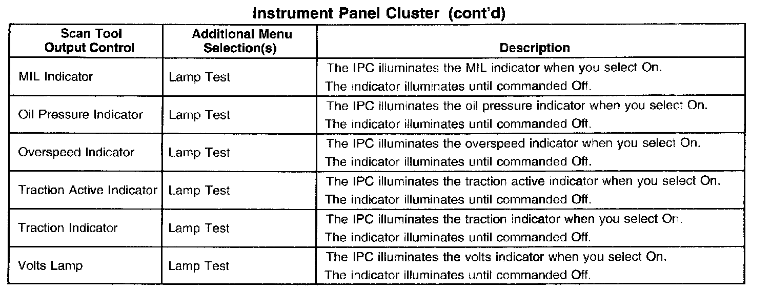 Scan Tool Output Controls / Instrument Panel Cluster 2 Of 2: