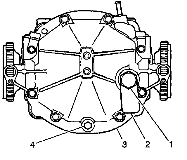 6. Refill the rear axle housing with approximately 1.0 liter (1.0 qt) of Synthetic Gear Oil 75W-140 GM P/N 89021809.