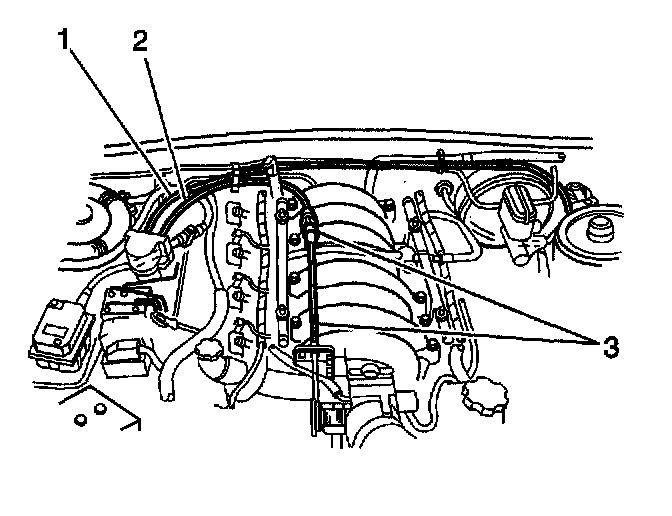 4. Open the retainer clip at the intake manifold, and remove the cable (3) from the clip.