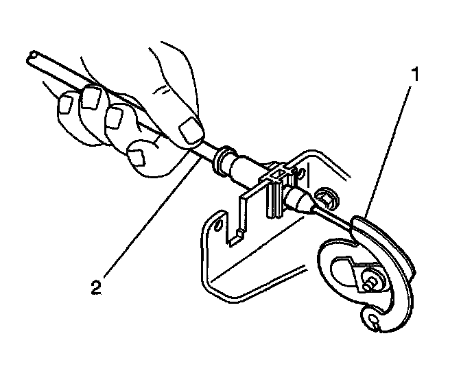 3. Remove the cruise control cable (2).