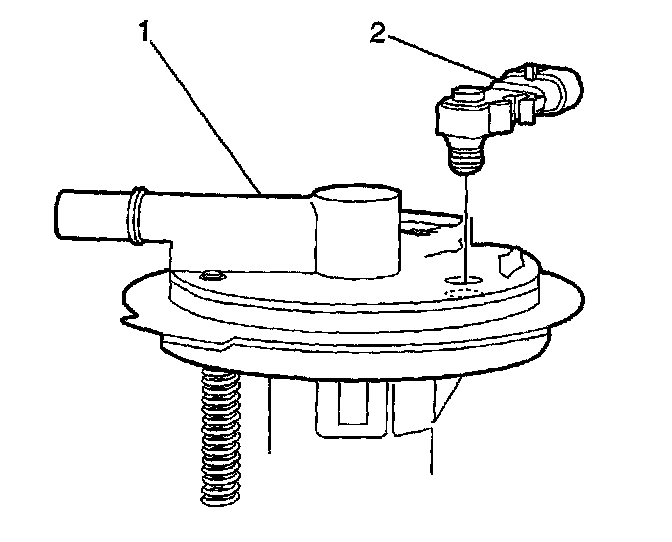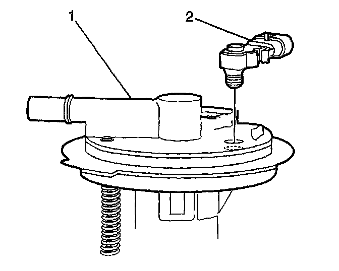 1. Install the fuel tank pressure sensor (2) to the sender assembly cover (1).