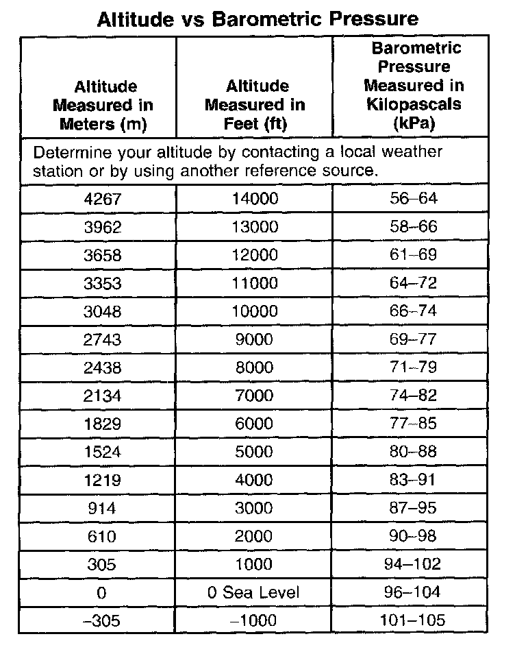 Altitude Vs Barometric Pressure: