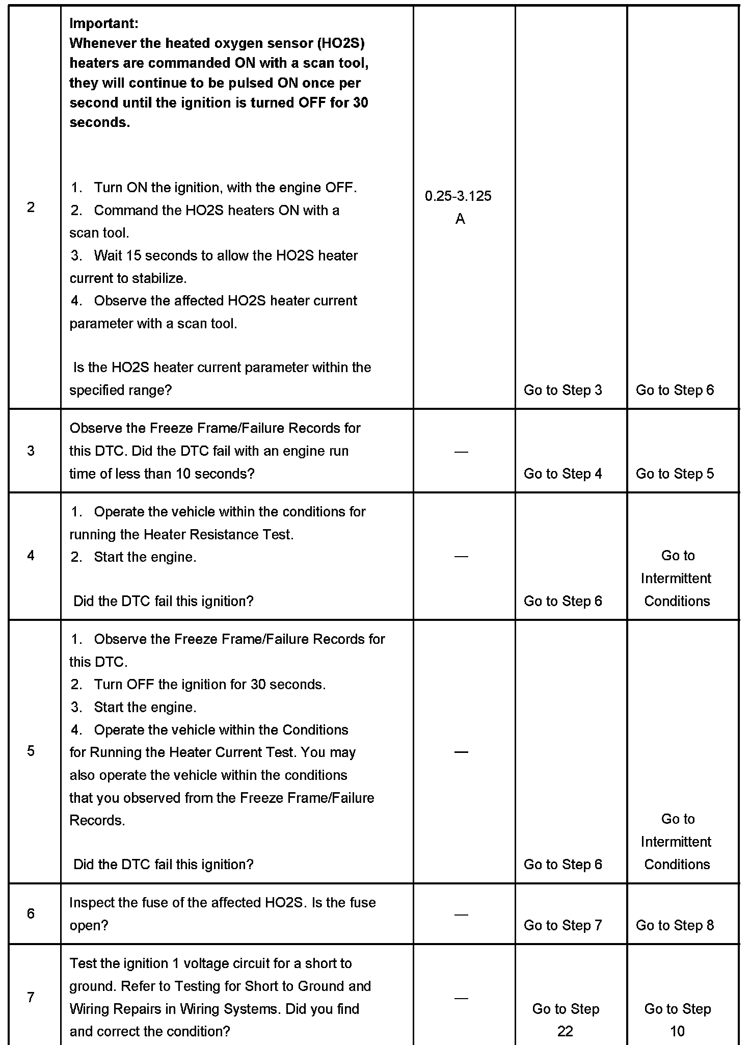 The PCM detects that the affected HO2S Heater Current is more than 3.125 amps or less than 0.25 amps.