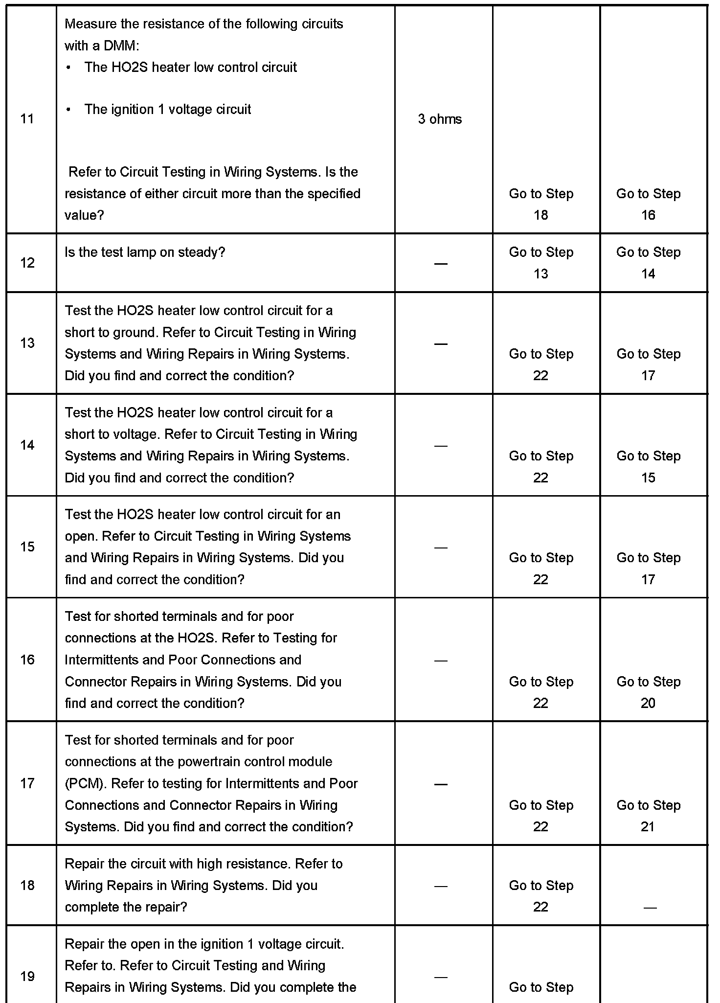 The PCM detects that the affected HO2S Heater Resistance is more than 3.125 ohms or less than 9.81 ohms.