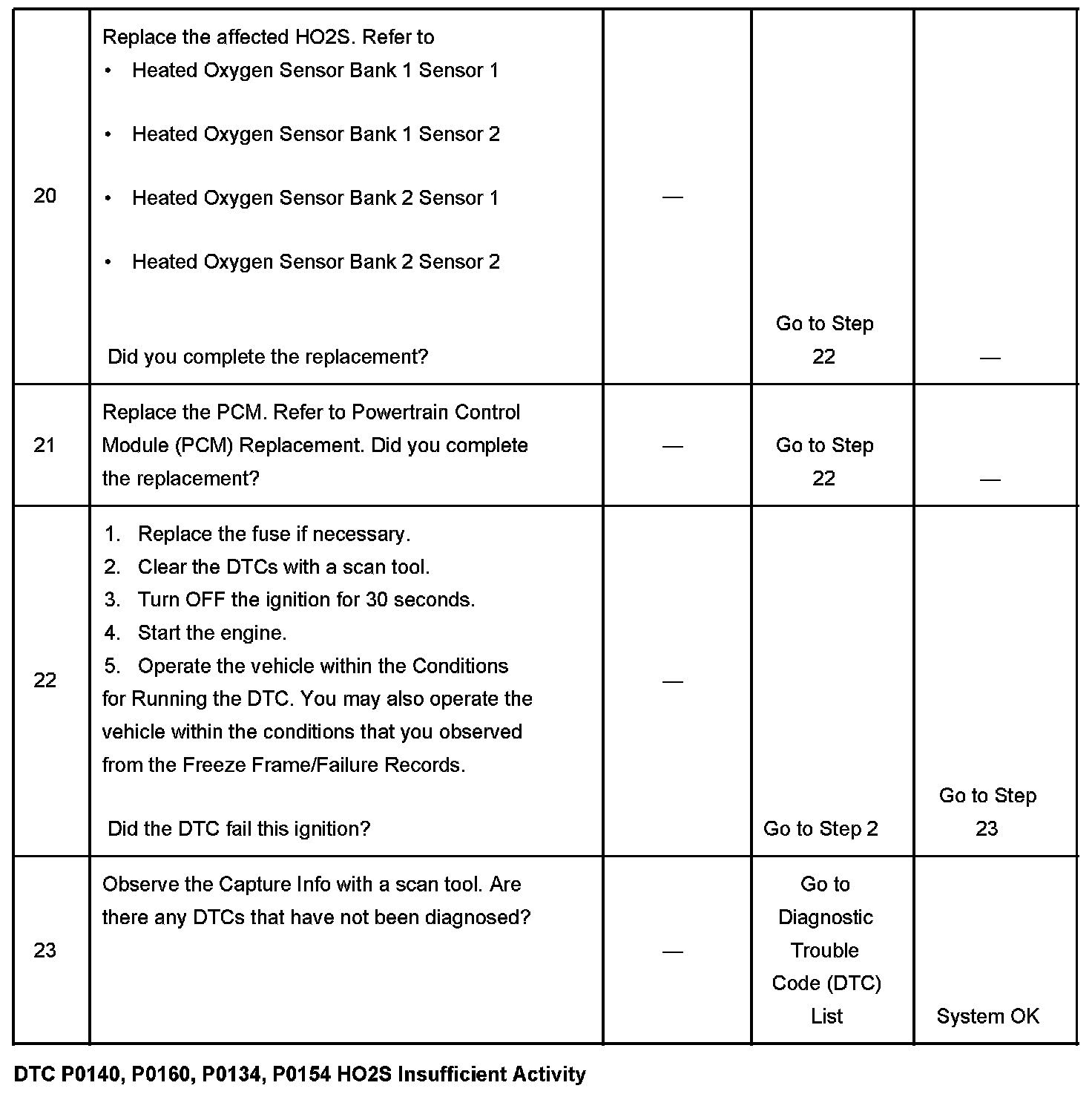 This bulletin is being issued to revise DTC P0135, DTC P0141, DTC P0155, or DTC P0161 Heater Performance and Step 2 of DTC P0140, P0160, P0134, P0154 HO2S Insufficient Activity in the Engine Controls sub-section of the Service Manual. Please replace the current information in the Service Manual with the following information.